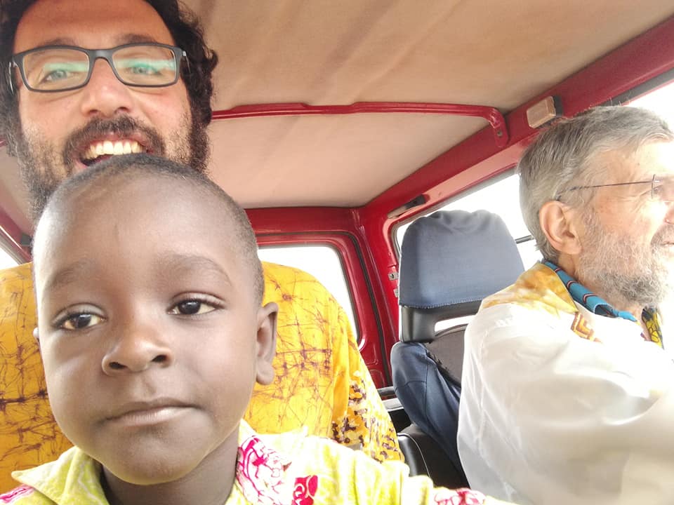 A Kongodia il mio passaggio non è previsto, solo qualcuno deve aver sentito che in città è arrivato un nuovo prete, e quando don Gianni alla fine della messa annuncia il mio nome, sono accolto da fragorosi applausi. La Messa è finita e mentre sistemo le mie cose nello zainetto, mi ritrovo affianco un piccolo nanetto nero: si chiama Jean, avrà più o meno 2 anni e per la festa sfoggia una bellissima camicia verde. Mi prende lo zaino e deciso lo porta verso la Suzuki! Ho un nuovo segretario! E subito mi sento accolto, la corale canta, la gente mi saluta con allegria, non capisco ancora molto il francese, e nel villaggio la maggior parte della popolazione parla Agni (la lingua locale), ma è bastato il gesto di Jean per farmi sentire a mio agio.