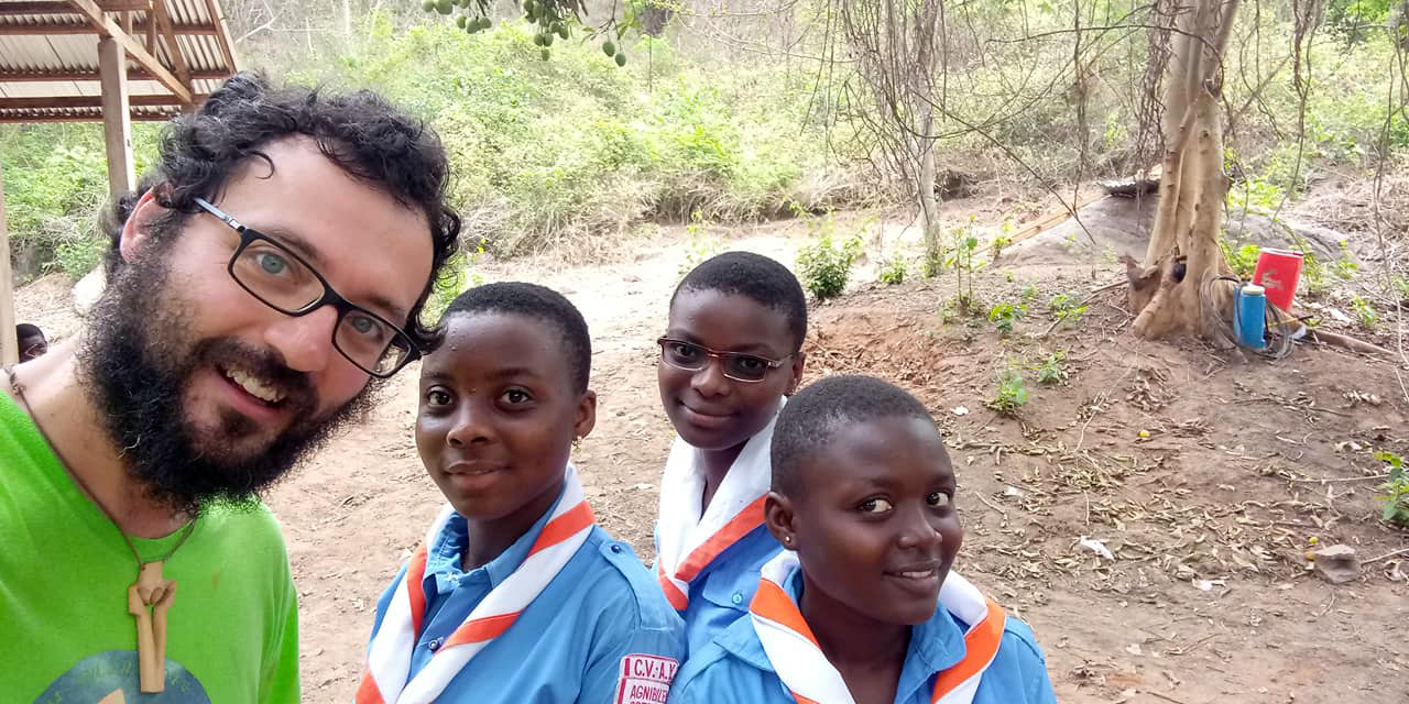 Finalmente distolgo lo sguardo dalla pietra e mi godo un’altra grande visione dell’opera di Dio. Dall’alto della collina, per chilometri, si estende la foresta e la campagna ivoriana: banani, heveà, anacardi, cacao, iroco, fromager, i villaggi e in lontananza la città… uno dei paesaggi più belli goduti in questi mesi di Africa. Ma non è l’unico prodigio del Signore, scendendo per il ripido sentiero, mi perdo ad osservare questi bei ragazzi che non sono abituati a camminare per percorsi di montagna e la maggioranza di loro sfoggia come calzatura dei fantastici sandali di gomma (esattamente quelli che da piccolo ti mettevano per andare sugli scogli). Allora qualcuno sceglie di fare tutto il percorso con il sedere per terra insudiciando completamente la divisa del cvav, altri si danno premurosamente la mano, altri si lanciano in pericolose corse, altri si attardano invocando l’aiuto materno di Maria. Si chiacchera, si ride, si scherza, si racconta: il grande miracolo della condivisione. Scesi alle falde della montagna celebriamo una messa sotto una tettoia e quale migliore Vangelo poteva capitare se non quello della trasfigurazione? Perché in fondo la Bibbia è in buona parte letteratura alpinistica! (peccato che nessuno sappia cosa sia l’alpinismo).