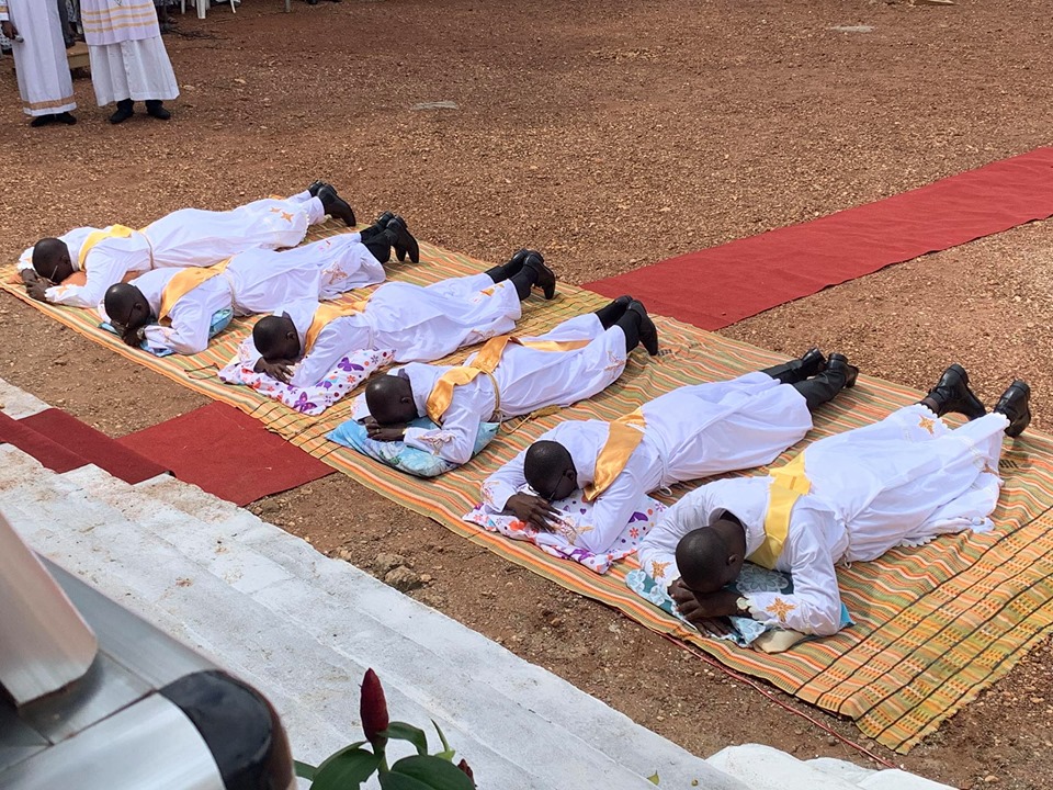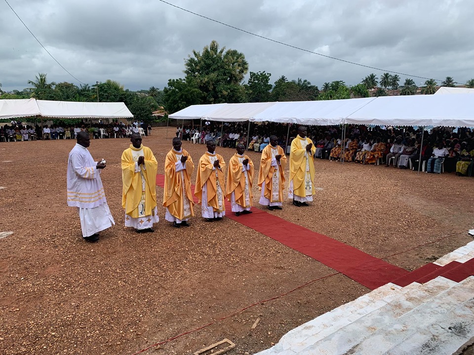 È la festa dei santi Pietro e Paolo, sabato 29 giugno, e l’intero presbiterio di Abengourou si ritrova accanto al Vescovo Boniface per celebrare l’ordinazione di sei nuovi sacerdoti. La cattedrale è ormai troppo piccola per ospitare gli eventi diocesani più importanti e così nel cortile del duomo vengono montate delle tende per coprire i fedeli dal sole e dagli scrosci d’acqua che in questa stagione non sono molto forti, ma sono molto frequenti.