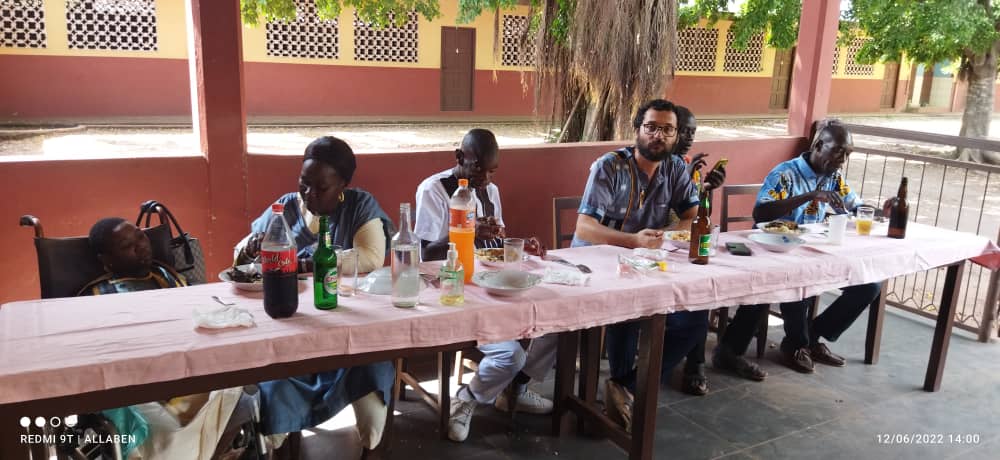 Dopo la cerimonia abbiamo previsto un pasto per festeggiarlo. Teya, Suzanne e Elodie, le mamme dei bimbi disabili, hanno preparato riso e attieké in abbondanza, però molti degli invitati mancano, forse in pochi credevano che veramente si potesse organizzare un pasto per Koffi, altri ancora avevano avuto inviti alle altre feste di battesimo. Di fatto cominciamo il pasto con qualche lontano parente che si è ricordato del povero Koffi sentendo l’odore del riso, la madrina con la sua famiglia e qualche amico della parrocchia. Eppure il cibo è abbondante, ma come nella parabola evangelica, qualche chiamata, qualche curioso, qualche invitato preso ai crocicchi di Agnibilekrou e la terrazza si riempie di persone. Maurice è contento e perfettamente a suo agio al posto d’onore tra me e la sua madrina.