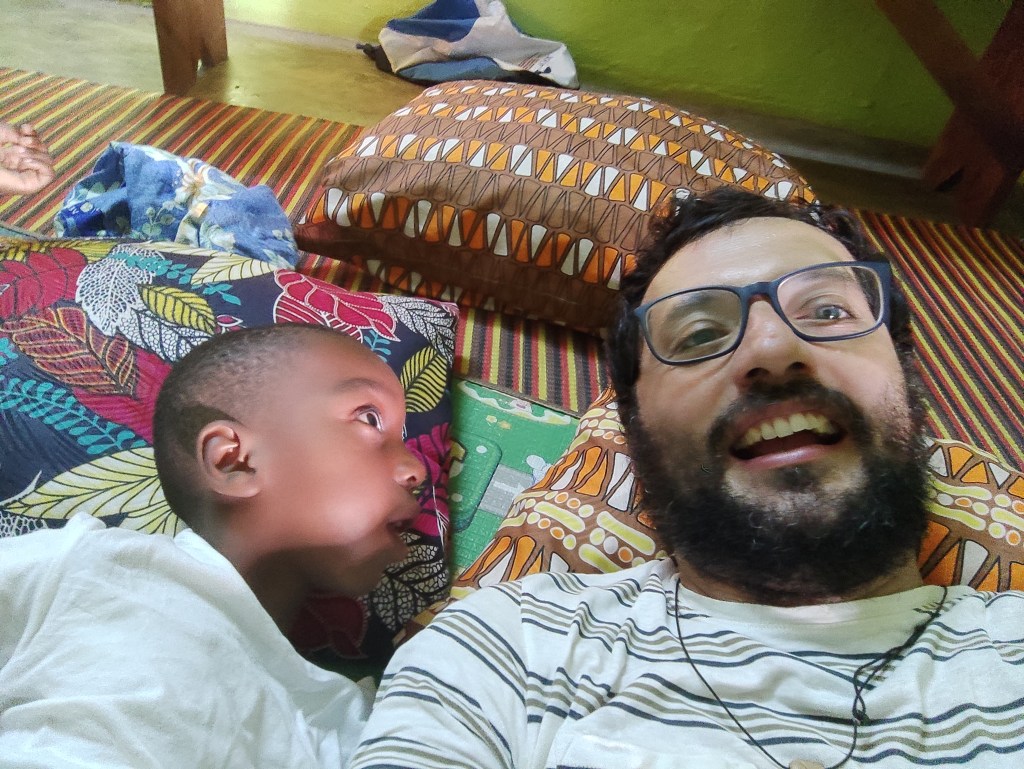 Sembra l’altro ieri questo incontro e, d’altra parte, sembra secoli fa… perché dopo questo di incontri ne sono avvenuti a centinaia. Inoltre abbiamo potuto trovare una terapia adeguata per Jean Baptiste per compensare la sua epilessia, lo abbiamo invitato a partecipare agli incontri tra bimbi disabili alla parrocchia dove era sempre presente con il suo sorriso splendido e la mamma ha cominciato a frequentare il cortile della parrocchia per fare delle pulizie prendendosi pure l’oneroso compito di pulire riordinare e riassettare la mia camera ed pure i suoi grandi occhi non sono più così malinconici.