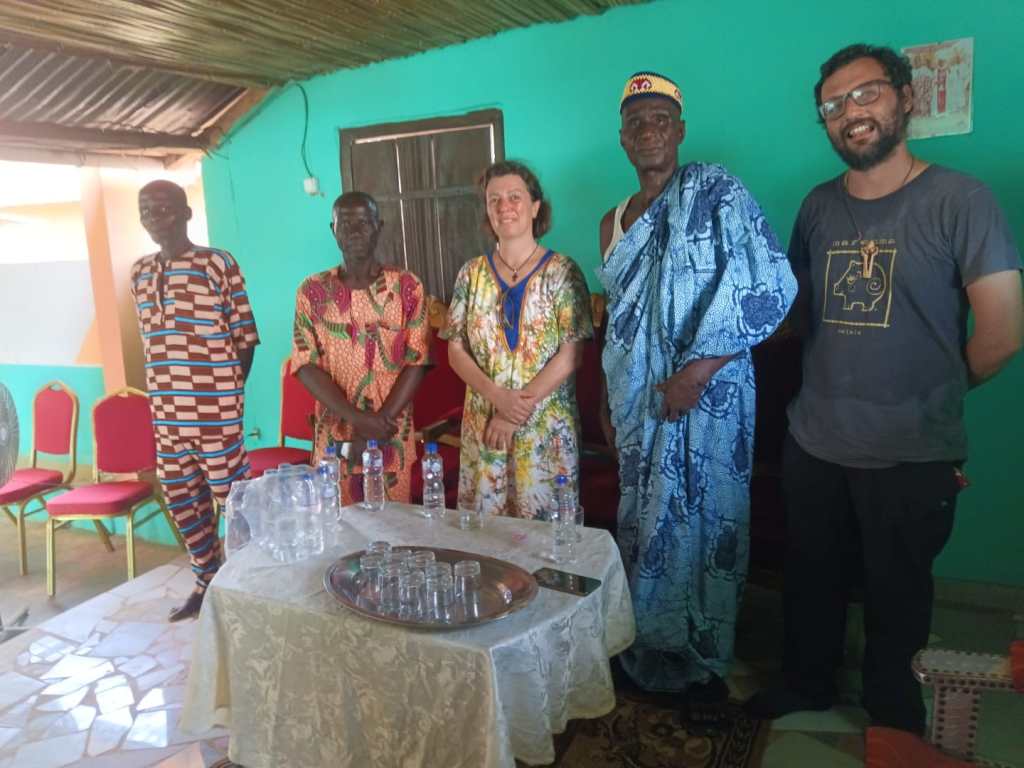 Una volta arrivati al villaggio siamo investiti dal cerimoniale africano e dobbiamo salutare i parenti di François e poi i catechisti del posto che ci conducono dal re, un uomo alto e distinto che però mostra di conoscere ed essere interessato al suo popolo. Attualmente risiede in un piccolo cortile, ma sta costruendo un grande palazzo. Mi sembra un’esagerazione la costruzione di una tale opera in un piccolo villaggio, ma colgo tutto l’orgoglio del suo popolo e la stima nel volere costruire un edificio che rimane comunque a servizio della collettività in quanto palazzo reale e non casa personale. In effetti pochi ragionano in questa maniera e pensano soprattutto al loro tornaconto personale.