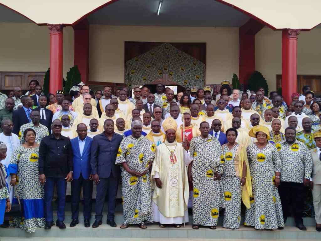 Arriviamo al villaggio di Assaoufué appena in tempo per l’inizio della Messa. La Chiesa è finalmente finita dopo dodici anni di cantiere e anche i piccoli dettagli sono stati valorizzati: vetrate colorate, copie di dipinti che riproducono la vita di San Pietro, patrono della parrocchia, impianto di amplificazione, pavimenti bien piastrellati… la Chiesa è in perfetto ordine, eppure non è riempita dai parrocchiani del villaggio che devono sedersi all’esterno sotto la pioggia della stagione umida, ma da una serie innumerevoli di autorità. Vedo il re di Agnibilekrou, che mai si è degnato di partecipare alle nostre celebrazioni in città, con altri re e capi villaggi, e poi le autorità militari, civili e politiche. Tra queste spicca la presenza del primo ministro ivoriano.