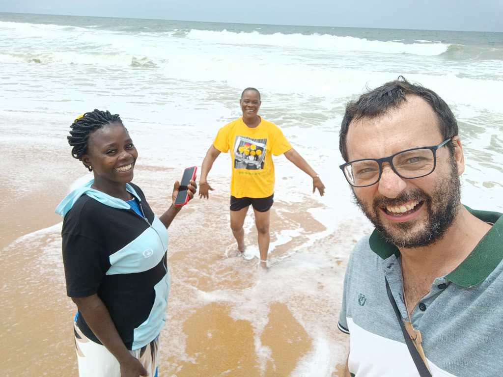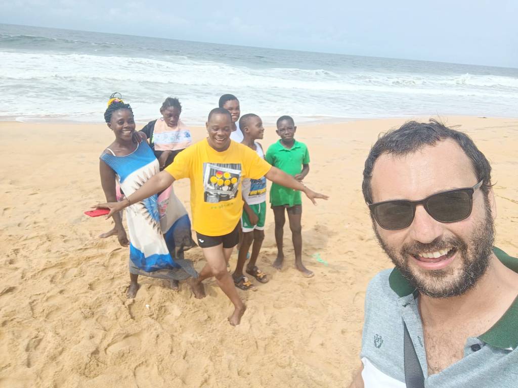 Con lei decidiamo di riempire la macchina di bambini che hanno finito le loro cure per recarci al mare che dista poche decine di chilometri. Allora eccoci in macchina con Ramatoullay, Ange, Aristide, Divine e sua mamma Suzanne. La giornata non è delle migliori, giugno è un mese terribilmente piovoso e nel sud spesso arrivano veri e propri nubifragi, ma tra qualche squarcio di sole e qualche scrocio di pioggia arriviamo a Grand Bassam, località turistica ivoriana e ci affacciamo a vedere l’oceano che come sempre è squassato da onde imperiose e oggi, a causa delle nubi è di un nero-grigio intenso. Divine comincia a urlare e a scappare per la paura. Aristide che al don Orione comincia a familiarizzare con l’acqua vorrebbe gettarsi dentro, ma ha paura della forza delle onde. Mamma Suzanne, che per la prima volta vede il mare resta a bocca aperta e continua a ripetermi “Mon Dieu”, mentre sorrido del suo stupore fanciullesco tanto autentico. Riusciamo a condividere un bel pesce con attieké e birra fresca e siamo proprio contenti.