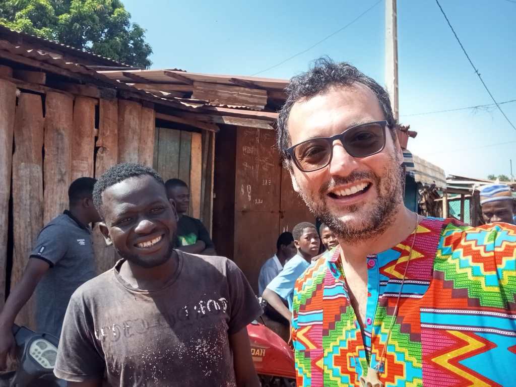 Prima di partire vado da Zacharie che ha ancora la magliettaccia da buttare, davanti a casa stanno montando dei tendoni proprio in mezzo alla strada carrabile per poter festeggiare, ma mi spiega che la vera festa sarà il sabato. Io lo saluto, dicendo che devo rientrare e penso che non ho ancora visto e conosciuto la sposa… ma in fondo salutare e conoscere la sposa del mio amico non mi sembra che sia una priorità in questo contesto tanto particolare.