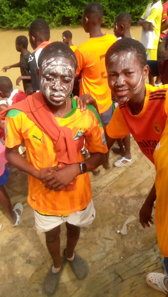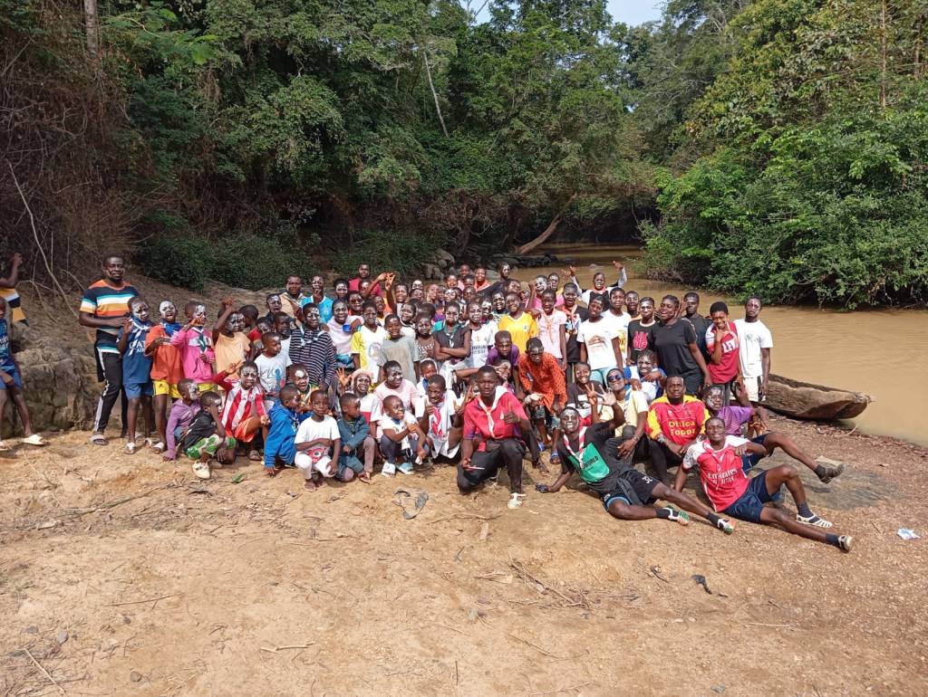 Il gruppo è presente da più di quarant’anni in città, ma ultimamente il sogno è di potere creare una sezione anche a Bangoua, il villaggio più grande e più lontano della nostra parrocchia. Al villaggio i bambini certo non mancano, spesso mancano le risorse per permettere ai bambini di partecipare alle attività e soprattutto mancano giovani e adolescenti disponibili ad impegnarsi per la formazione dei più piccoli. Più volte ho cercato di spingere alcuni giovani a impegnarsi nella formazione CV-AV, ma i risultati sono sempre stati deludenti. Quest’anno abbiamo cercato di forzare un po’ la mano e tutto il gruppo della città è stato invitato ad un campo di formazione e divertimento proprio al villaggio di Bangoua. Grazie all’impegno di tutti, la risposta è stata davvero grande e più di ottanta CV-AV della città si sono spostati al villaggio, a loro si sono aggiunti una ventina di bambini locali, in totale più di cento persone hanno riempito il villaggio. E se la montagna non va da Maometto…ecco Maometto andare alla montagna!