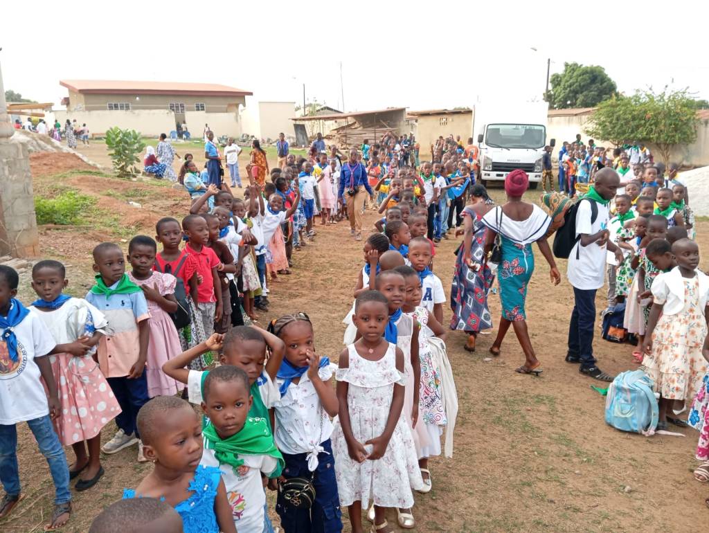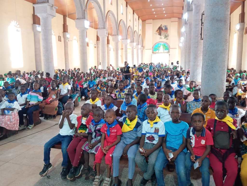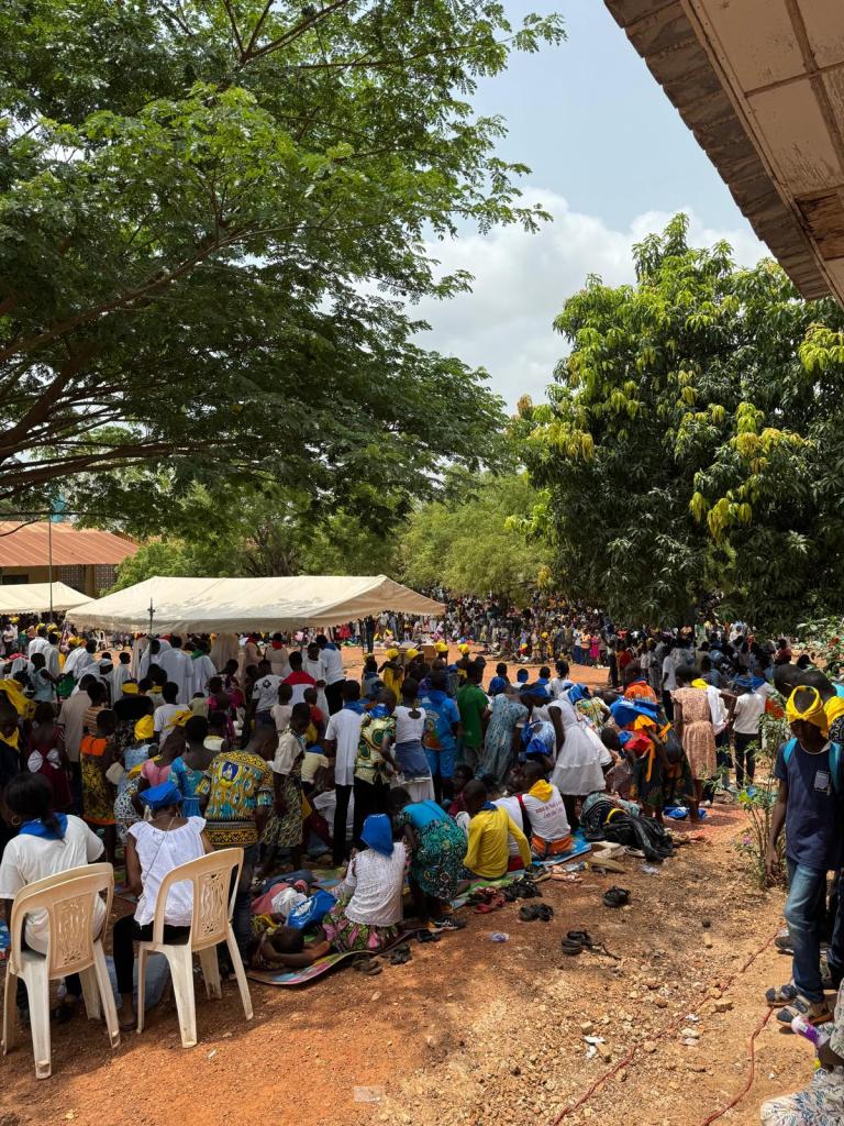Dopo due giorni di follia finalmente l’apoteosi della Messa. Purtroppo il vescovo Boniface è assente per questioni di salute, ma in questa occasione non ha mai mancato di sostenerci con dei consigli e con il sostegno economico. A rappresentarlo è uno dei suoi vicari episcopali, père René, che presiede la Messa lasciandomi predicare. Durante l’omelia presento Luce, la piccola mascotte del giubileo che nella sua semplicità ha tanto da insegnare ai bambini: siamo tutti chiamati ad essere pellegrini di speranza. E mentre la celebrazione scorre, mi sento soddisfatto e orgoglioso del lavoro svolto, non tutto è stato perfetto, ma questo sogno utopico di poter convocare per un giubileo diocesano tutti i bambini della diocesi si è realizzato. E ripenso al lavoro encomiabile di tanti amici preti che mi hanno aiutato e di tanti animatori che hanno gestito benissimo l’accoglienza e spero che questa giornata sia indimenticabile per i bambini… e poi penso che se pure i bambini si dimenticassero di questo grande incontro, sicuramente resterà indimenticabile per me.
