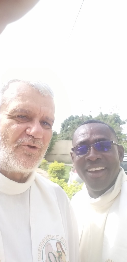 Il rientro era stato pure un’occasione per un piccolo regalo alla mia parrocchia di origine, la parrocchia di Campagnola, dove sono cresciuto come uomo e come cristiano. Proprio l’anno scorso avevamo fatto preparare delle vie crucis per la nostra Chiesa parrocchiale di Saint Maurice a Agnibilekrou. Vedendo queste opere ho subito pensato alla chiesa parrocchiale di Campagnola, così spoglia e senza ancora delle via crucis. Così è nata l’idea di regalare una copia di queste opere anche per la mia parrocchia. Immediatamente molti parrocchiani si sono mobilitati per incorniciare queste opere perché fossero ben visibili nella nostra chiesa. Il risultato mi è sembrato veramente bello. Questa gara di generosità dei campagnolesi ha portato che non solo le via crucis siano ben installate, ma che una buona somma di denaro donata per incorniciale fosse rimasta inutilizzata. A settembre, durante le mie vacanze, Don Claudio e la comunità hanno deciso di donarmi questa somma per sostenermi nella mia missione.