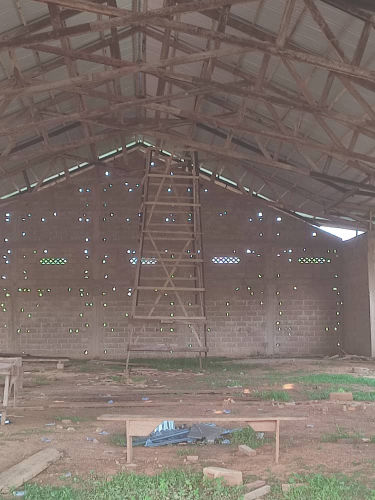 In questo modo ho ricevuto un aiuto molto toccante sia dalla comunità in cui sono stato battezzato, Magliano in Toscana, sia dalla comunità dove sono cresciuto, Campagnola. Subito ho pensato a come investire questi soldi e ho pensato che sarebbe stato giusto spenderli per un’altra comunità parrocchiale. La nostra comunità di Agnibilekrou è ormai veramente autonoma e le offerte dei fedeli bastano al mantenimento delle strutture e delle attività parrocchiali e negli anni i missionari hanno costruito tutto il necessario: una bella casa parrocchiale, una chiesa grande, delle belle sale per le attività, una casa per gli ospiti ecc…. Ci sono però in diocesi parrocchie rurali dove mancano le strutture essenziali per una buona pastorale. In particolare ho pensato a père Edmond. Originario della parrocchia di Saint Maurice Edmond è un prete molto generoso e attento ai bisogni dei più piccoli e dei più poveri. Nei primi anni di ministero si è dedicato con amore ai prigionieri in quanto cappellano del carcere. Circa un anno fa’ in pieno anno pastorale è stato nominato parroco di Boahia, una comunità rurale il cui parroco era tragicamente deceduto in un incidente in automobile. Père Edmond si è da subito donato con coraggio a questa comunità che si trova nel nord della nostra diocesi, in una zona a forte presenza musulmana. Sebbene Boahia sia parrocchia ormai da parecchi anni, manca ancora una Chiesa, e la comunità si ritrova a celebrare sotto una tettoia posticcia coperta da qualche ramo di palma che può proteggere dal sole intenso, ma non di certo dalla pioggia. I suoi predecessori hanno cominciato a costruire i muri dell’edificio, ma ormai mancano i mezzi per continuare. Così grazie all’aiuto di Magliano e di Campagnola abbiamo comprato i fogli di lamiera necessari per coprire la Chiesa e i parrocchiani si sono impegnati a trovare e segare le assi di legno e a pagare la manodopera. Dopo alcuni mesi di preparazione e di lavori finalmente la Chiesa è coperta. Talmente tante cose sono ancora da completare, ma per questa Pasqua la comunità finalmente potrà celebrare al riparo dalle piogge (che spesso in questo periodo sono abbondanti) e pregare con semplicità che il raccolto sia buono, per poter permettersi di far studiare i figli e dare da mangiare a tutta la famiglia e con grandi sacrifici poter ancora aiutare la propria parrocchia, per il pavimento, l’intonaco, l’impianto elettrico, le porte ecc… Intanto il parroco père Edmond ringrazia il grande missionario don Isacco e le comunità di Campagnola e Magliano per il loro contributo essenziale.