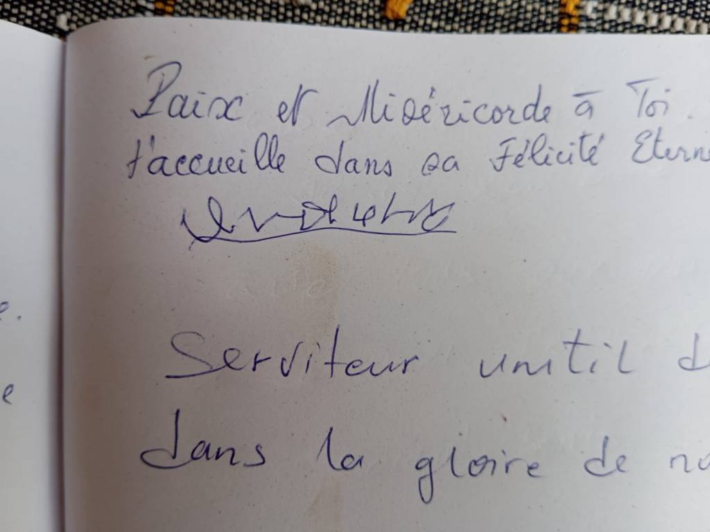 In parrocchia abbiamo preparato un piccolo altare per rendere omaggio al papa, secondo l’usanza locale, la sua foto, una tavola semplice e un quaderno per le preghiere. E alcune persone hanno scritto il loro cordoglio e la loro preghiera.