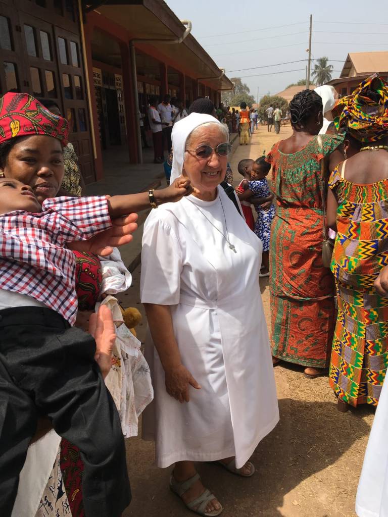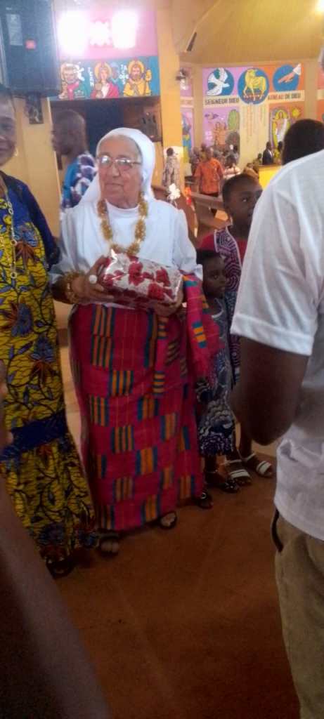 È una festa semplice, ma ricca di riconoscenza. Infatti insieme al saluto, si celebrano i cinquanta anni di missione di suor Anna. Era arrivata in Costa d’Avorio come giovane suora nel lontano 1975. Allora le suore avevano aperto una casa da appena un anno nella regione del sud, nella città di Aboisso, a lei era toccato di aprire una nuova casa a Mafferé. Per anni si era impegnata con entusiasmo nell’evangelizzazione della Costa d’Avorio, mai dimenticando il carisma di san Luigi Palazzolo di essere là dove nessuno vuole andare: il catechismo, la visita ai villaggi, la vicinanza a tutti soprattutto ai giovani. Dopo un po’ di anni in Costa d’Avorio ha continuato la sua missione in Congo, evangelizzando le periferie di Kinshasa, ricordava sempre con affetto anche questa missione congolese. Infine era tornata in Costa d’Avorio nella missione di Agnibilekrou.