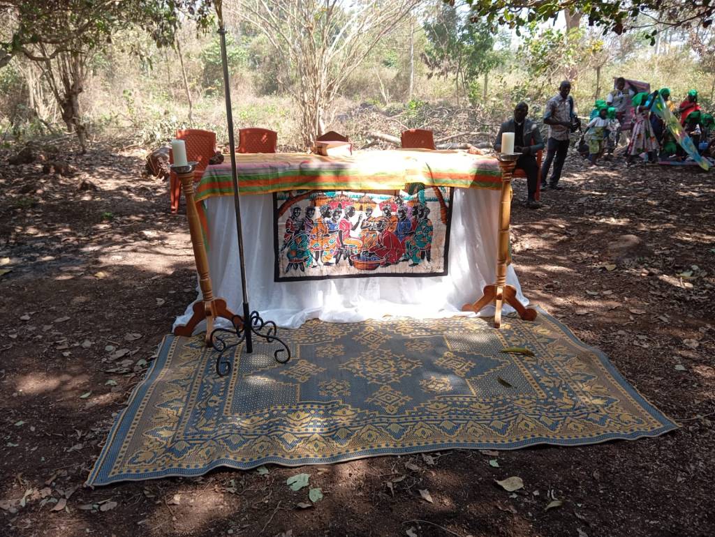 Quando finalmente siamo seduti mi accorgo che si tratta di una folla immensa, la Messa sta per cominciare, oggi soffia il vento secco del nord, l’harmattan, il vento del deserto che porta un’inaspettata e provvidenziale frescura, e mi sento molto contento di quanto fatto e di quanto il Signore ha benedetto il nostro lavoro. Durante la Messa chiedo ai bambini di prendere il loro foulard. Quest’anno non sono stati confezionati della tipica forma triangolare, ma rettangolari con dei legacci alle due estremità superiori, in realtà il foulard altro non è che un grembiule, quel grembiule che Gesù mise il giovedì santo per lavare i piedi dei suoi discepoli, quel grembiule che Gesù non si levò più. Il tema dell’incontro è “Siate a servizio gli degli altri”, e il Vangelo della lavanda dei piedi ci racconta al meglio questa attenzione. Mi torna alla mente la mattina, durante la colazione, mentre spiegavo ad un volontario italiano il programma della giornata e dicevo che il racconto della lavanda dei piedi sarebbe stato centrale nella catechesi e nella Messa. Colgo nel suo sguardo un po’ di smarrimento e capisco che non è molto ferrato sul tema e gli chiedo “conosci il racconto della lavanda dei piedi?”. E lui “Si immagino che Gesù si sia fatto lavare i piedi dai suoi adepti”. Già… chi potrebbe pensare il contrario? Io forse che fin da piccolo ho celebrato il giovedì santo guardando il caro don Isacco già un po’ attempato chinarsi sul mio piede di bambino per lavarmelo con cura, ma esiste qualcosa di più rivoluzionario del Figlio di Dio che lava i piedi ai suoi discepoli? Esiste qualcosa di più incredibilmente assurdo? E mentre i bambini spostano il loro foulard dalla testa alla vita, facendolo diventare un semplice grembiule, mi dico che quel gesto è responsabilità enorme, perché “chi non vive per servire, non serve per vivere”: assurdità della Misericordia di un Dio servo.