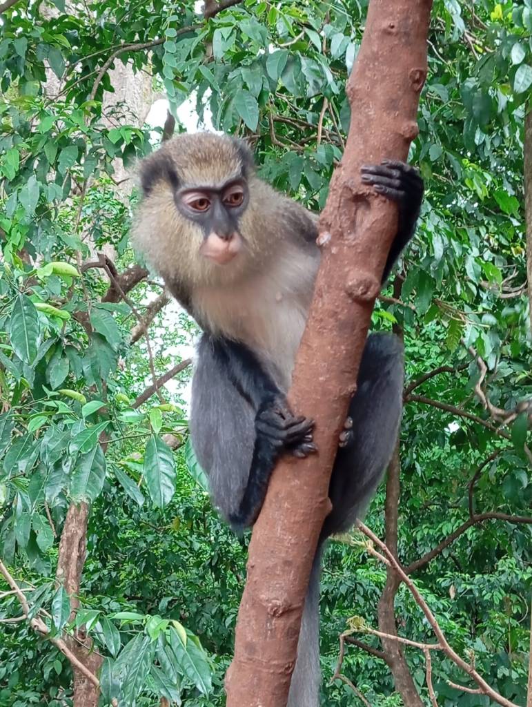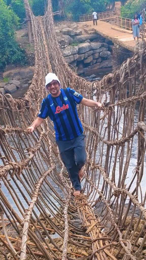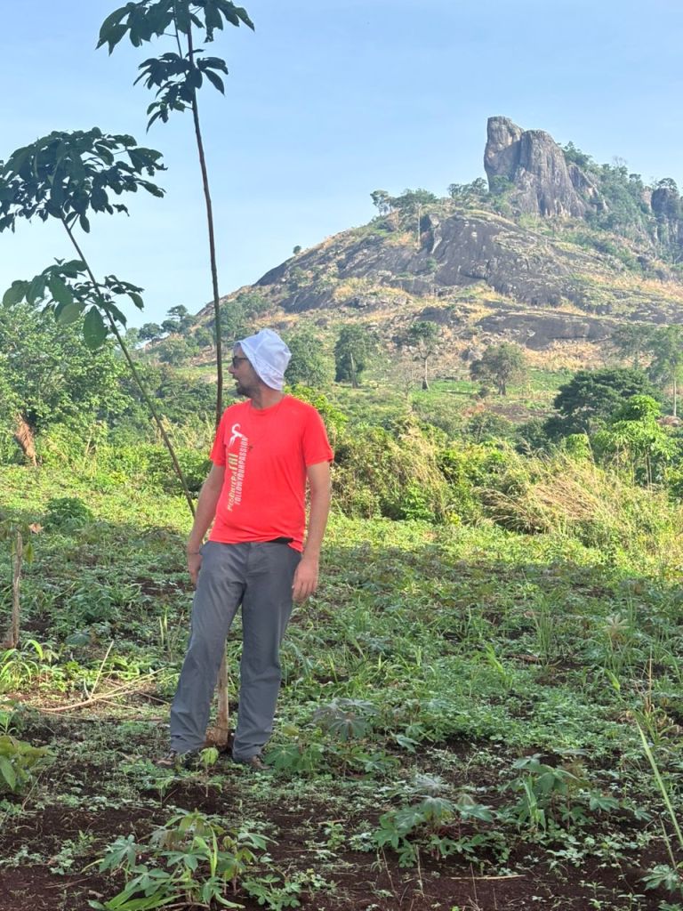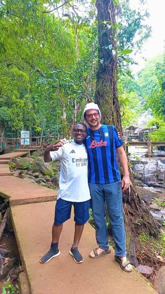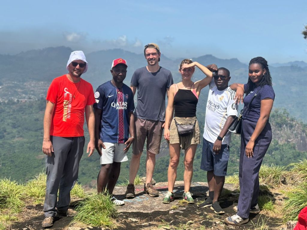Arrivando a Man il cuore mi si apre, il paesaggio diventa famigliare e la pianura ivoriana lascia spazio alla collina, proprio come a Bergamo, proprio come a Magliano… Man, al contrario della nostra zona, offre una bella varietà di attività turistiche. Così in qualche giorno di visita non abbiamo troppo tempo per riposarci. Il primo giorno visitiamo cascate meravigliose, foreste sacre dove le scimmie sono venerate e rispettate e un ponte di liane su uno dei fiumi più importanti della Costa d’Avorio. Il secondo giorno riesco a convincere père Maurice, un po’ scettico, a fare trekking sul Dente di Man, bellissimo torrione granitico che domina la città. La salita è un po’ complicata perché il sentiero è invaso dagli arbusti e non è attrezzato, ma la visuale ripaga alla grande i nostri sforzi. Mai avrei pensato di scalare una montagna ivoriana come ho fatto tante volte a Bergamo. Certo siamo a poco più di ottocento metri, ma si tratta di una delle vette più alte del paese. Infine, prima di partire, saliamo su un’altra montagna a più di mille metri, ma questa volta arriviamo in macchina sul monte Tonkpi, dove è costruita una grande torre della televisione da cui si gode di un panorama meraviglioso.