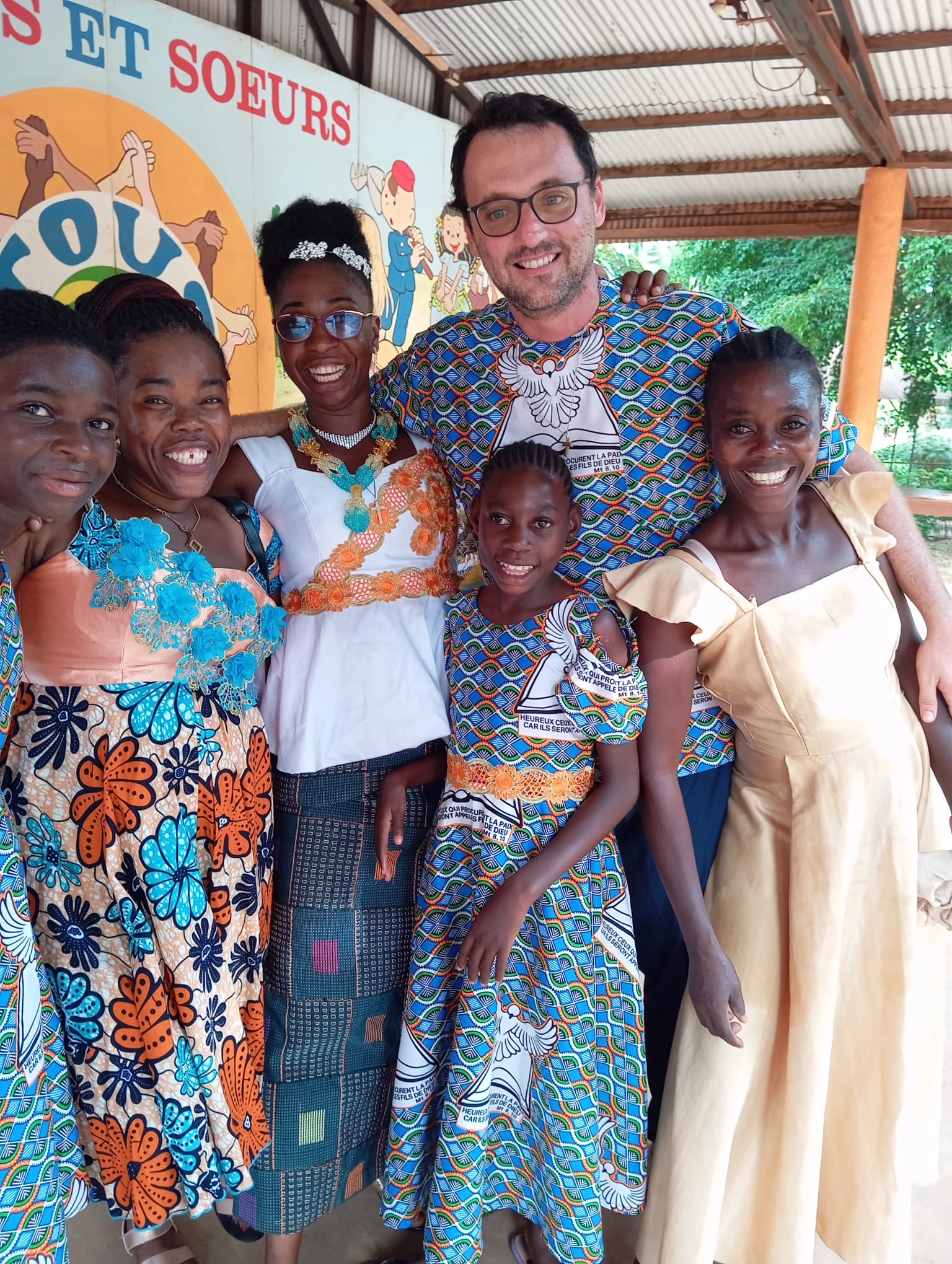 Mentre tutti ballano mi commuove una scena, Koffi viene preso da parte da mamma Tehia che lo abbraccia e lo ringrazia. Tehia ha perso suo figlio disabile ormai da quattro anni, da allora si prende cura di Koffi, è lei che lo lava due volte per settimana, spesso acquista per lui il necessario, le ciabatte, il piatto, il bicchiere, i pantaloni. Dopo la morte di suo figlio Jean Baptiste ha cominciato ha frequentare la Chiesa cattolica, prima aveva frequentato altre chiese protestanti, ma è stato nella Chiesa cattolica che aveva trovato un aiuto puntuale, effettivo e non miracolistico per suo figlio Jean Baptiste. Dopo un percorso di catecumenato di 3 anni, il sabato santo finalmente riceve il battesimo e la mattina di Pasqua è raggiante con i suoi compagni di battesimo e, finalmente può abbracciare Koffi! Che gioia!